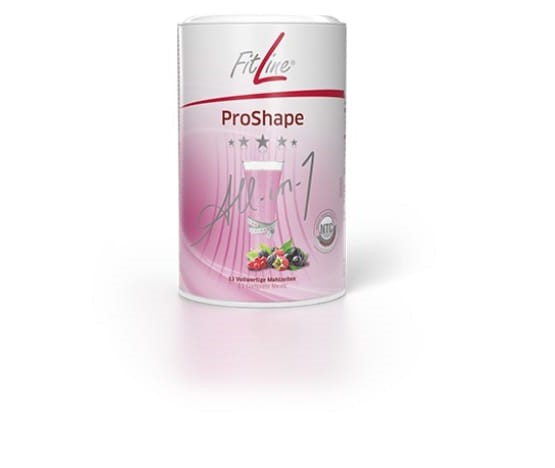 FitLine Proshape All-in-1* Wild berry contiene extractos de café verde, mate verde y ortigas, vitaminas y minerales, edulcorantes de origen vegetal y no contiene conservantes.